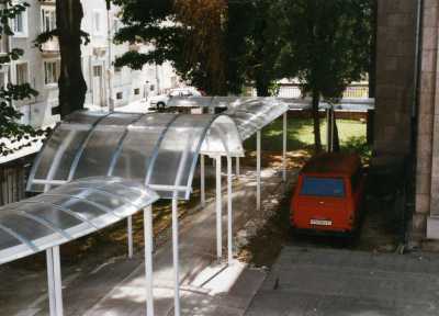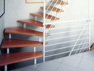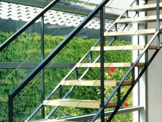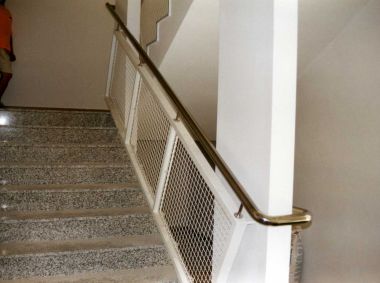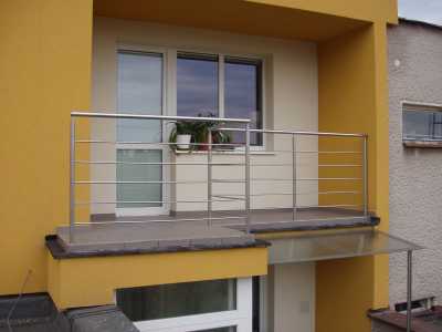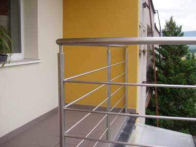 Zábradlie: oceľové aj madlo z ocele; oceľové a madlo z dreva; sklo a madlo z ocele; oceľové s pletivom.